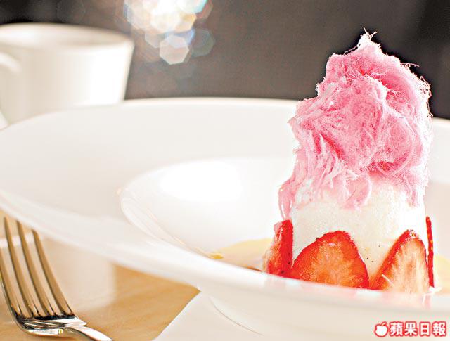 外形超fancy,蛋白與砂糖打起後內藏士多啤梨醬蒸熟,綴以椰糖製的中東棉花糖。