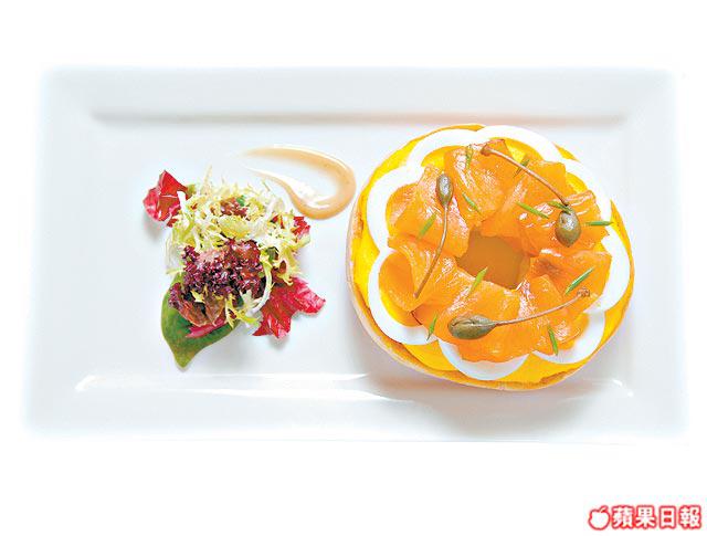 猶太包面鋪上蛋黃醬、蛋白、煙三文魚及水瓜柳,與煙三文魚同吃,可嘆盡多種口感。(星期六、日及公眾假brunch中供應)