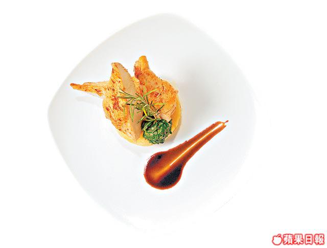 薯仔片與蛋白芝士一層一層砌成餅批,充滿芝士的膻香。而燒至皮香的雞胸,吃時蘸甜甜的燒汁,肉質脆嫩。(須3天前預訂)