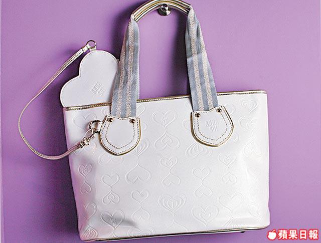 絲帶吊飾白色短Tee$790、白色漆皮手袋$1,899、銀×黑間條Belt$490、黑色條子短褲$2,500AllFromAnnaSui