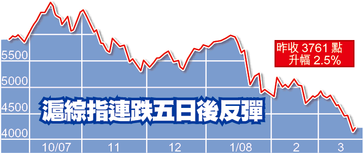 【本報訊】人民銀行在兩會閉幕後瞬即調升存款準備金率而非加息,兩份官報發表為股市「打打氣」的文章,國務院總理溫家寶此刻又說政府會密切關注股市,加上美國減息,市場預期利淡因素告一段落。滬深股市在中外奏出「喜樂」下絕地反彈,暫扭轉連跌五日的走勢。