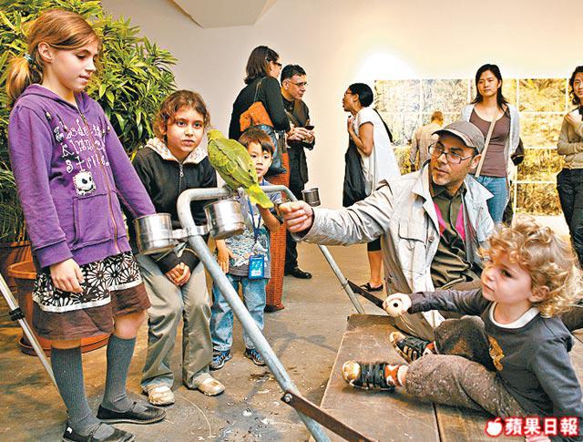 同場參展的法籍夫妻檔古儒郎+林海華則是「學者藝人」,他們在港生活12年,參展的作品叫《鸚鵡從不說謊》,他倆像考古學家,重提香港古代熱帶雨林的記憶,將流浮山的蠔殼山積的景致,比喻為這個殖民之城的過去與未來,蠔城住着鸚鵡,因為牠既美麗又愚蠢,同時又深具教養,雖然問非所答,但他是誠實的!最妙是古儒郎+林海華建了一塊紀念碑上刻「PersonalIsland」:「為了慶祝香港回歸10周年,我們用香港典型手推車運送過去雙年展的中國館,但他們說這不是我們的,唔收得!」古儒郎話送畀佢都唔要!事情實在複雜:「你知道我們是法國人,代表香港,參加威尼斯雙年展,世界何其複雜!」他們與中國當代最紅藝術家艾未未來了一場對話,自言來自學術界,「但不依循學術的框架做事,因為那只會一事無成。」由此進入了正題,參展藝術家的命題,威尼斯雙年展是以國家為單位的國際展覽,但我們有大陸、台灣、香港、澳門代表館……正如杜子卿形容:「知你想做乜,但結果卻悶蛋到暈!」揚威國際的還是「香港本色」呢!