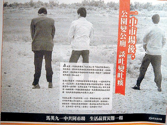 國民黨候選人馬英九為搶攻女性選票,再度發揮其「師奶殺手」魅力,早前扮成身懷六甲的孕婦,拍了一個平面廣告。廣告出街後,反應不俗;近日推出的「快樂經濟餐」漢堡包平面廣告,「優質競選牛肉--6%以上經濟成長/3萬以上國民所得/3%以下失業率;……」亦讓人看後想吃上一口。至於,謝長廷的競選廣告近日就針對馬的「一中政策」窮追猛打,先有三名疑似大陸男子正在公園草地小便的一則平面廣告,上面寫着:「一中市場後,公園變公廁,談吐變吐痰」,再有兩名大陸漢手持畢業證書,說着:「俺也是北大畢業的!」諷刺「馬英九一中共同市場、各行各業災難一場」。