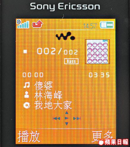 貴為W系列一分子,賣點當然係Walkman播放功能。W380i最特別係機面上嘅凹凸面設計,睇落有啲似盲人專用鍵,好似太平凡,但配上個紫色外殼之後,整體感覺不知幾Grand!值得一提係,凹凸鍵完全為音樂播放器而設,不妨留意機背粒粉紅色解鎖掣,起初以為㩒咗之後可以拆殼,點知原來係屏幕解鎖鍵,搞錯晒!繼承索愛強調嘅「WalkmanOnTop」概念,W380i唔揭蓋一樣可挑選歌曲、調校音量,音色方面喇叭聲都幾炸得;至於用立體聲耳筒嘅效果,Model試過就話Bass好勁!
