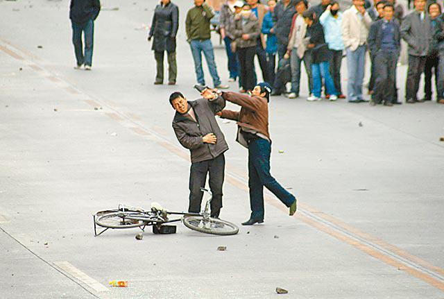 「我看到好像都是漢人遭到攻擊,我看到至少七、八個漢人遭到石塊和拳頭的襲擊。」25歲瑞士遊客巴爾西格(ClaudeBalsiger)看到本月14日藏民在拉薩的八廓街廣場攻擊漢人的情況。巴爾西格本月8至17日都在拉薩,目睹騎單車的老年漢人被藏民襲擊。「他們(藏民)像狼一樣嚎叫着,這也是他們瘋狂時的表現。他們開始攻擊一切與漢人有關的東西和人。」他又看到一名加拿大遊客冒險救走一名正被藏民襲擊的年輕漢族男子。加拿大遊客扶起被藏民踢傷、臉部流血的漢族男子,並向當時拿着石頭的藏民示意停手,然後帶漢族男子到安全地方。