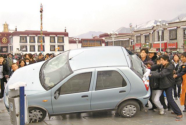 「拉薩的建築物都出現熊熊的火光,遍地都是濃煙,我從來沒有看過僧人參加過這樣的暴力。」19歲遊客肯伍德(JohnKenwood)說,當日在大昭寺附近,藏民逢巴士和電單車駛過都攔截,凡有漢字標誌的,都被砸爛、搶劫或燒毀。他目睹一名20多歲駕電單車的漢族男子被藏民拳打腳踢打死。「該男子的頭部被人用路邊的大石打了數次,他倒在地上,再沒有動彈過。」他還看到幾個裝滿石塊的箱子,供藏民向漢人投擲,發動攻擊,像是有計劃的行動。