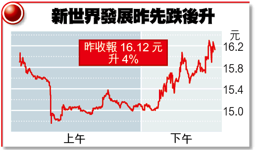【本報訊】新世界發展(017)昨公佈截至去年12月底止業績,中期純利56.4億元,增長3.1倍,當中包括投資物業重估增值21億元及分拆新世界百貨(825)錄得一次過特殊收益16億元;中期息增加兩成,派0.18元。旗下新世界中國(917)中期純利升1.3倍,賺9.2億元,中期息增一倍,派4仙。 記者:高淑嫻