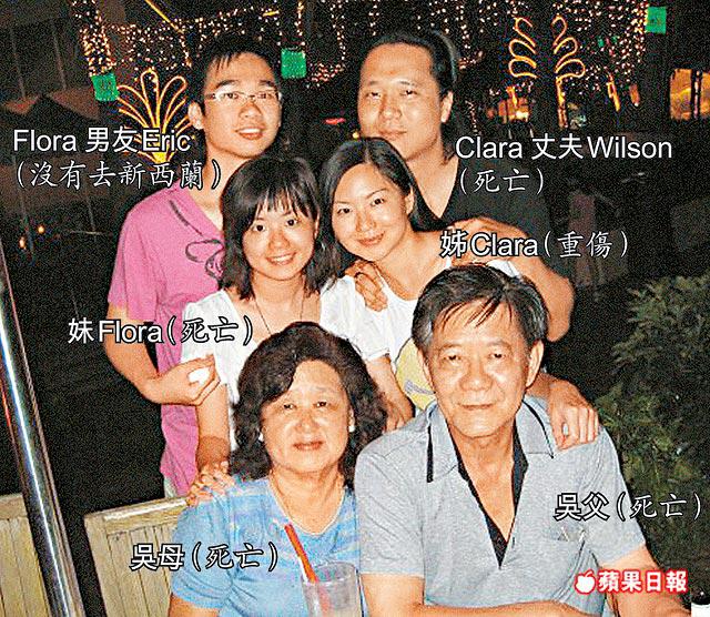 【本報訊】「家姐已經成功有個好歸宿,希望佢哋日後開開心心,白頭到老。」這是25歲妹妹對33歲姐姐的祝福。一場突如其來的異鄉車禍,沒有預告的瞬間奪走一切。沒有了父母、沒有了丈夫,連誠心送上祝福的妹妹,都成永別。奪去港人吳氏一家四命的新西蘭嚴重車禍,事發至今第三天,倖存的吳家姊姊Clara(中文姓名譯音「吳詩韻」)仍在當地醫院留醫,目前情況穩定,但出院無期。吳家關係融洽,經常一起出國旅行,詎料今次一家五口同行,卻只有姊姊活着回來。