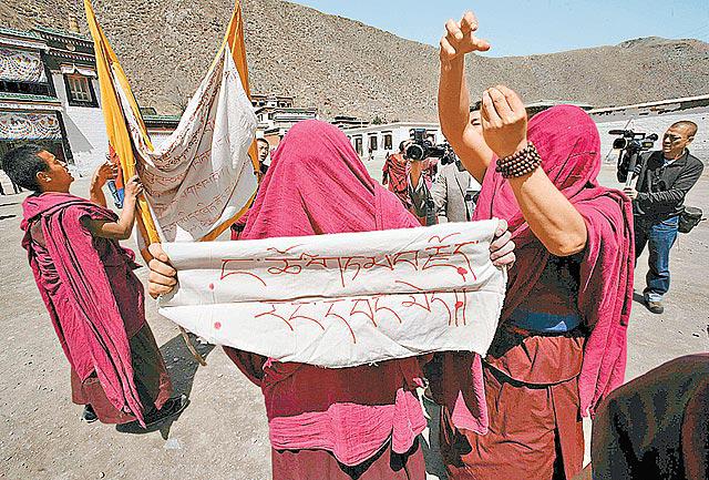 「我們並非要求西藏獨立,我們只要求有人權。」中國官方安排境外媒體採訪曾發生藏民示威地區的活動,再遇尷尬。國務院新聞辦昨安排第二批境外媒體到甘肅甘南藏族自治州夏河縣採訪,其間有喇嘛高舉代表藏獨的雪山獅子旗及藏文橫額示威,並向記者申訴,指他們沒有人權,又呼籲讓達賴喇嘛回國,而整個過程歷時10分鐘。