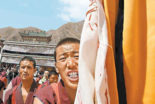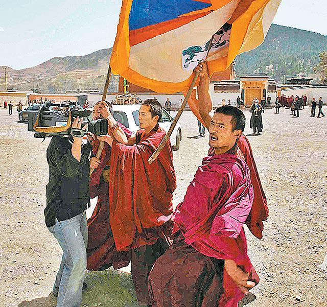 英國廣播公司、路透社和香港傳媒等11家媒體的記者昨日中午抵達夏河縣,採訪當地曾發生示威,並到屬西藏以外最大的藏傳佛教寺廟──拉卜楞寺。當時,寺內有900名喇嘛正在念經。據路透社報道,約15名年輕喇嘛突然衝出佛堂,其中有人揮動雪山獅子旗,部份人情緒激動。