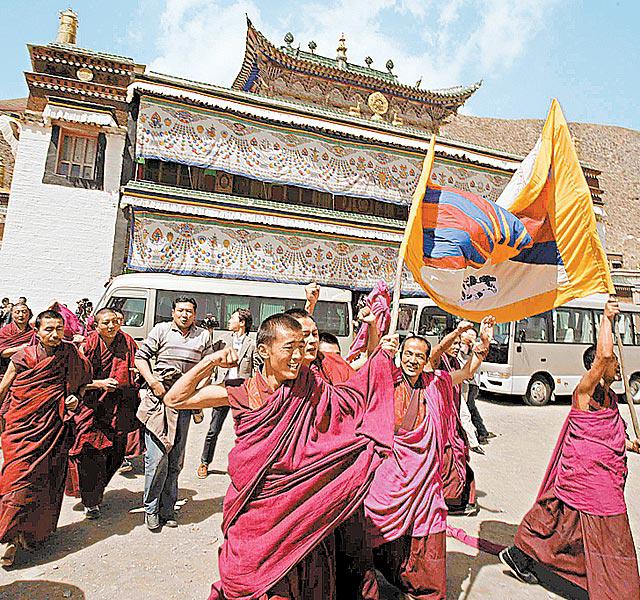 一名喇嘛以普通話說:「達賴喇嘛必須回到西藏,我們不是要求西藏獨立……」部份喇嘛更以長袍遮蓋頭部,聲稱仍受當局控制,並透露有武裝便衣人員駐守當地。