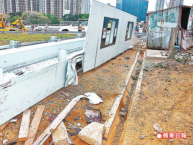 現場消息稱,旅巴先撞毀路邊一個交通燈箱,繼而越過石壆及防撞欄衝入工地內,一間工程用鐵皮屋、多個在建造中巨型路牌及多株小樹被撞倒,幸時值清晨未有工人開工。