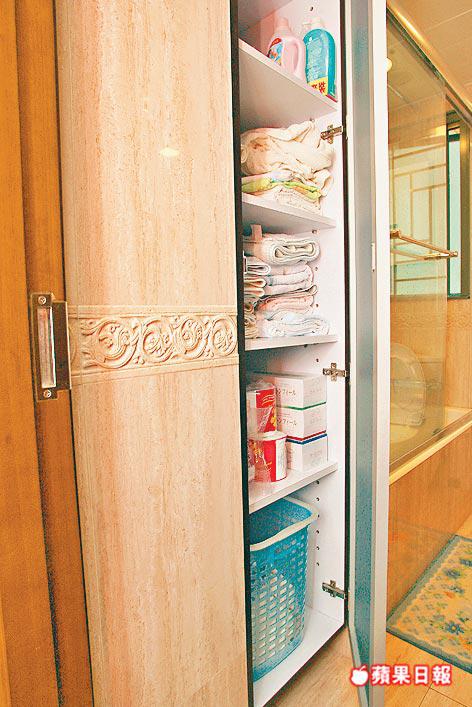 全屋以套房所佔空間最多,內櫳巨型,原圖則套廁頗大,將原有洗手盆位改作衣帽間,拆去企缸建洗手盆櫃,保留浴缸,基本功能不變。此外,廚房新做廚櫃,工人房建有地台,所有窗戶加設防蚊網。