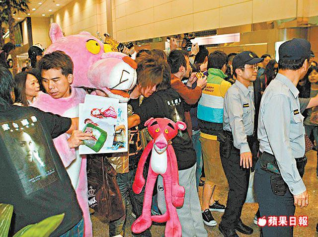 【台灣直擊】近日在日本東山再起的安室奈美惠,昨午抵達台北機場,為明天及後天在台北巨蛋舉行的兩場演唱會《namieamuroPLAYMORE!inTAIPEI》作準備。雖然安室已多次訪台,但機場仍見有近百名fans接機,其中有男歌迷打扮成儍豹欲親近偶像,可惜遭工作人員極力阻止上前。
