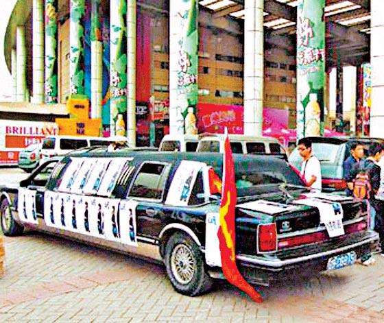 豪華的加長版黑色林肯車,竟在廣東大學校園內出現!在廣東商學院讀廣告策劃與經營管理的大學四年級學生洪佳彪(圖一),畢業論文是關於廣告行業的創業策劃,他為了做研究,花費8萬元自辦時尚雜誌《UR》,免費向大學生派發兩萬本;為幫雜誌造勢,還以日租3,000元租林肯車來載着雜誌,駛到各大學派發(圖二)。而洪如此豪氣,原來因為有個富爸爸! http://gd.news.163.com/08/0411/09/49857Q110036000Q.html