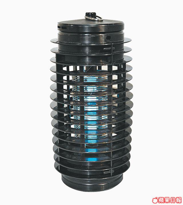 黑色圓筒滅蚊器,以燈光吸引蚊蟲走進機內,再電死蚊蟲,有效範圍10多米。