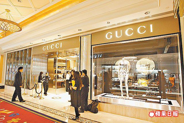 Gucci在澳門永利賭場名店坊內開設的專門店,佔地2,588平方呎,主打casino豪客,特別以矜貴皮革手袋坐鎮新店,如超過10萬港元的鱷魚皮手袋,以及5萬多元的鴕鳥皮手袋等。