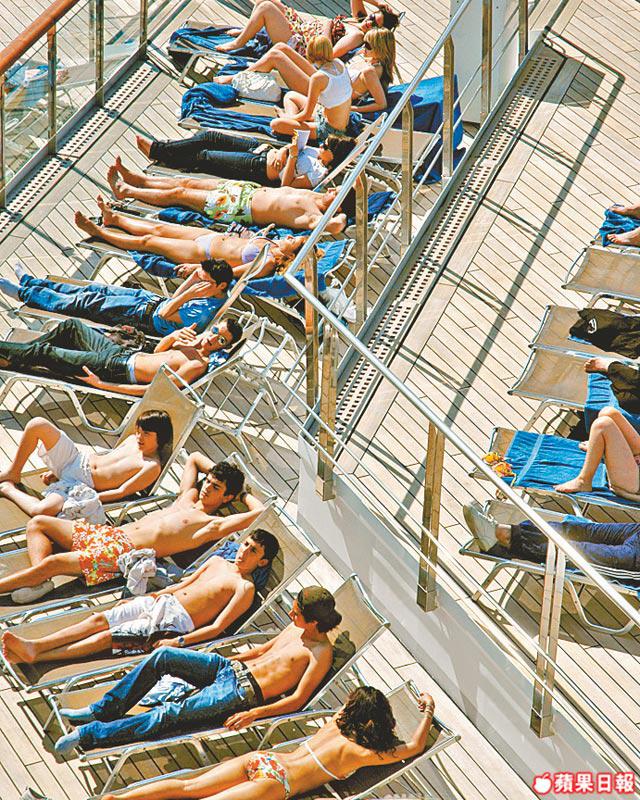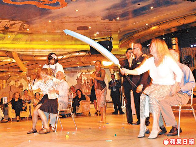 有人說怕坐郵輪,不是怕暈浪,而是覺得日日困在同一地方會悶得發慌,我卻不以為然,這種最源遠流長的旅行方法,一生至少經歷一次才無憾!現在,郵輪服務不斷進步,更多年輕人愛上船,因不只甲板上可找到歡樂,傳統大型表演當然不容錯過,如CruiseDirectorNiam說,現在是南美冬季,他們開始往地中海過夏天,所以船上節目會南美化,即是跳完玩,玩完再跳,好像11pm的DiscoNight便讓人瘋狂!也不知多少年未踏足過香港「的士高」了,但眼下這群來自歐洲及巴西的Teenagers跳到流汗跳到脫衣,手腳也不期然動起來,難得看到不少中老年人也跳得起勁,競舞之心再度熾熱,跳,跳,跳,越夜越多人,忽然記起今夜有個BestCouple選舉,剛到場就見兩個意大利及英國老婆不停在老公大腿上上下下,鬥快吹脹手上的蕉形氣球,玩的投入,看的亂叫,未滿18歲的也一看無妨……還有,今夜好像特別熱鬧,竟多了個Single'sNight,11pm開始,我11:15pm到場想一看有何意大利俊男在等我時,才知:「取消了」!