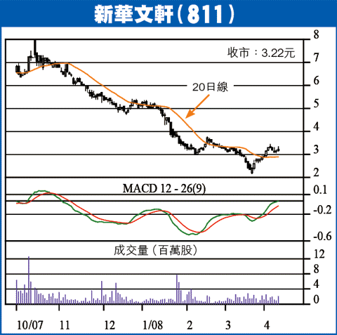 新華上市後,筆者曾作推介,主要係認為佢在圖書零售分銷行業佔有龍頭地位,將可大展所長,但10個月過去,新華表現令人失望,股價非但「潛水」,且更跌到一個令人「眼寃」的水平。大跌既然跌到過晒龍,掉轉頭,大升亦一樣可以升凸,近日股價雖由2元多回升上3元多,但仍係好偏低,以中線投資為出發點,只要股價去番上市價水平,已可賺成個開。
