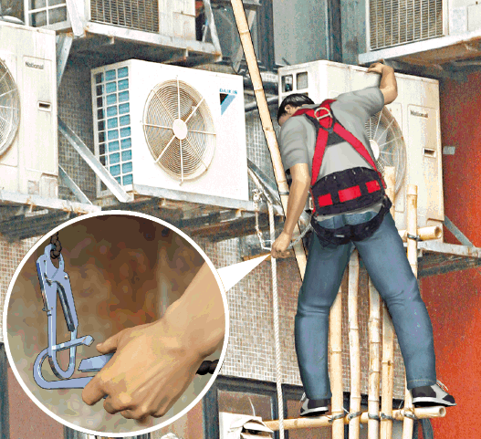 建造業總工會理事長蔡鎮華稱,在高空工作必須高度保持安全意識,「阻着做嘢鬆開安全帶係藉口,安全帶係用嚟保命嘅,點都唔可以鬆開」,安全帶扣着的繩可以兩邊郁動,其實並不妨礙工作,「安全帶有繩扣住,就算失足都係半天吊,唔會跌落地。」