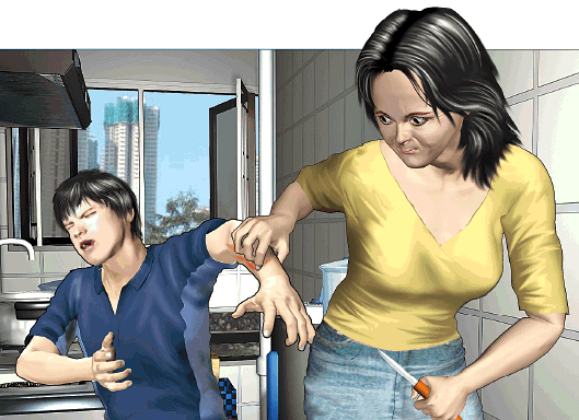 母奪刀抓傷兒臂