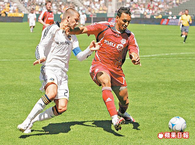 洛杉磯銀河就算有碧咸(左)壓陣,主場仍以二比三不敵FC多倫多。路透社