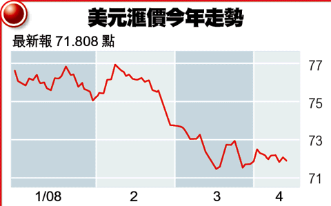 美國國家經濟研究局主席費爾德斯坦說,美國經濟持續疲弱,要靠弱美元來刺激出口,故不應干預美元跌勢,美元應繼續尋底。