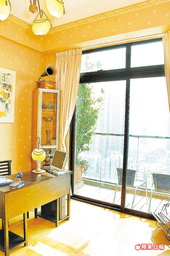 單位另一獨特之處是同層的書房獨有露台連平台,與客廳同樣陽光充足,除可以多角度觀賞窗外景色外,亦令房間內空氣更為流通,營造開揚空間感。至於上層為主人套房、兒童睡房、家庭活動室及廚房等。其中主人套房差不多由半層樓面打通而成,合共佔據3個房間面積,更備有大型按摩浴缸及轉角落地大窗。