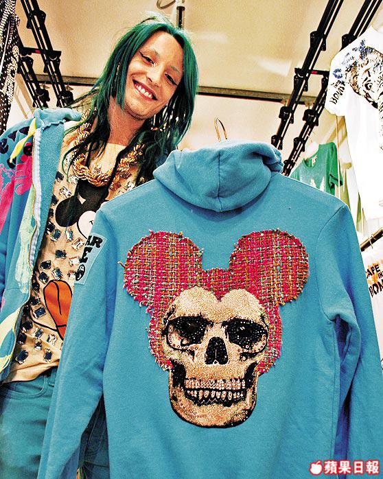 透過倫敦只准極力打扮的設計師、潮人參加的BoomboxParty的網站找到YearZero,店子門口及店裏都擺了幾個畫了Spongebob,給油彩淋到血肉模糊的VintageLV手袋,好衝擊!兩位店主Louise跟Rocky,一個橙色一個藍色,閃金小短裙配勁誇張眼影及眼睫毛,好搶眼。店子裏的服飾全由二人設計,Vintage或新製的衞衣或T-shirt貼滿施華洛世奇水晶。客人也可以拿自己的手袋給他們訂製加工DIY,齋畫每次$9,343起,連袋約$23,660起,我最愛他們的態度,可謂平嘢唔做,專拆大牌。Rocky:「我們只畫大牌子的手袋。像LV、Hermes、Gucci……」聽說顧客也可以自己做設計,讓你們製作?Rocky:「那是流言!我們只接部份VIP,以及真的畫得出好設計的人的設計。」而這些大客人就如麥當娜、碧咸BritneySpears、ParisHilton、YokoOno之類,碧咸設計件衫畫得唔靚佢都唔做。早陣子容祖兒就到他們的店去買衣服,他們就對容祖兒的親民態度跟靚樣讚不絕口。4月中時他們還應邀到港來跟容祖兒傾服裝設計問題呢!