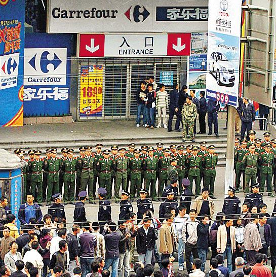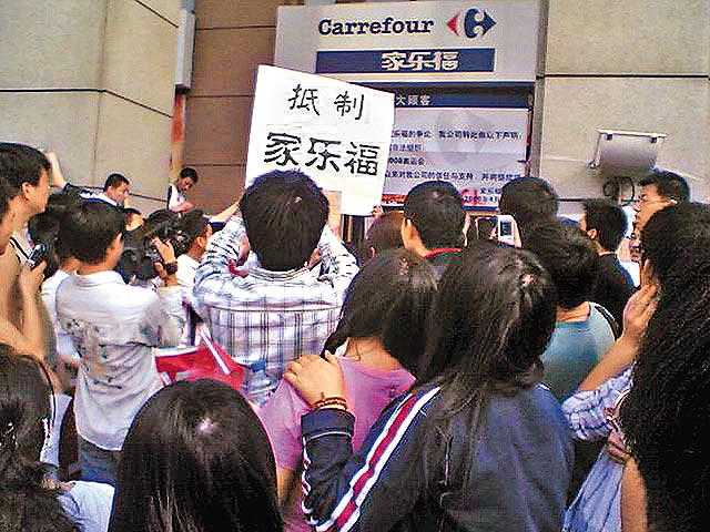 廣州有10多名市民,昨日打着國旗到家樂福示威,但在公安勸阻下很快散去。而19日曾發生示威的北京,昨日基本平靜,外國使館區和家樂福超市分店門外都有公安戒備;深圳多家家樂福未見示威,超市外有警車把守。