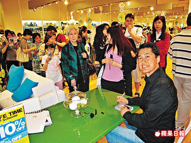 王敏德(Michael)昨日在九龍塘一商場舉行簽唱會,宣傳下周日舉行的港、日音樂交流會。他在商場內大唱情歌及派玫瑰花,吸引大批觀眾圍觀,當中以女性居多,任何年齡也有,部份更大讚他靚仔,他又邊派簽名照邊接受訪問。