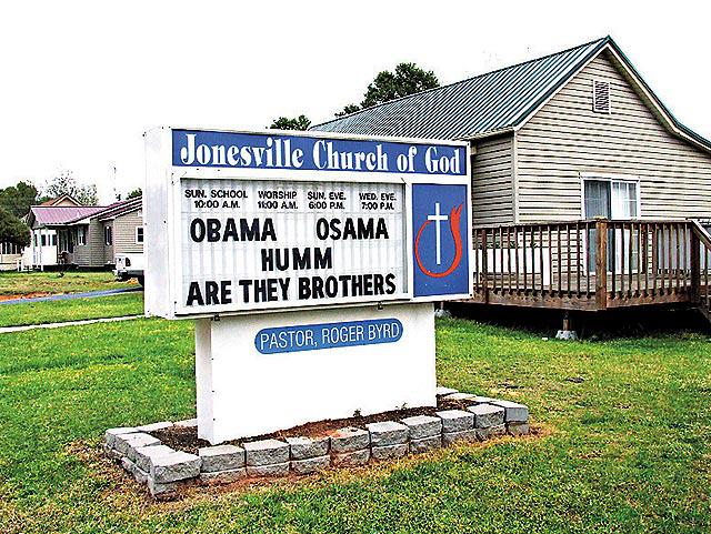 應該不是看了希拉莉的廣告,但南卡羅來納州牧師伯德(RogerByrd)在教堂外豎起標語,寫上「奧巴馬、拉登(Obama,Osama),他們是兄弟嗎」。伯德拒絕拆下標語,稱可讓人思考。