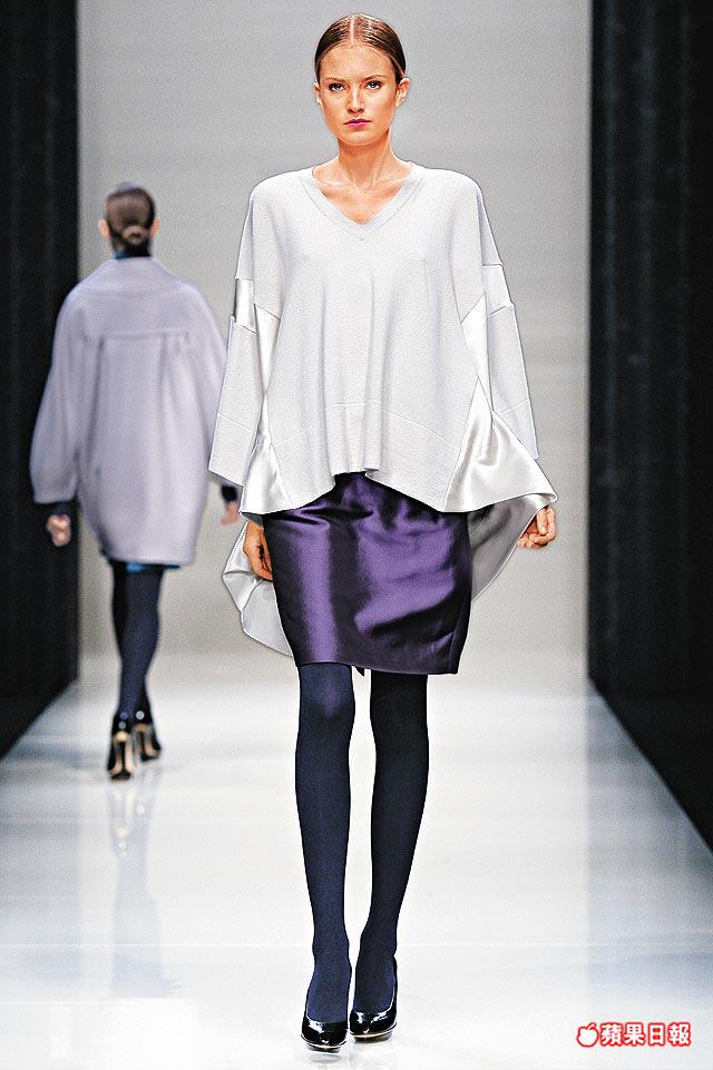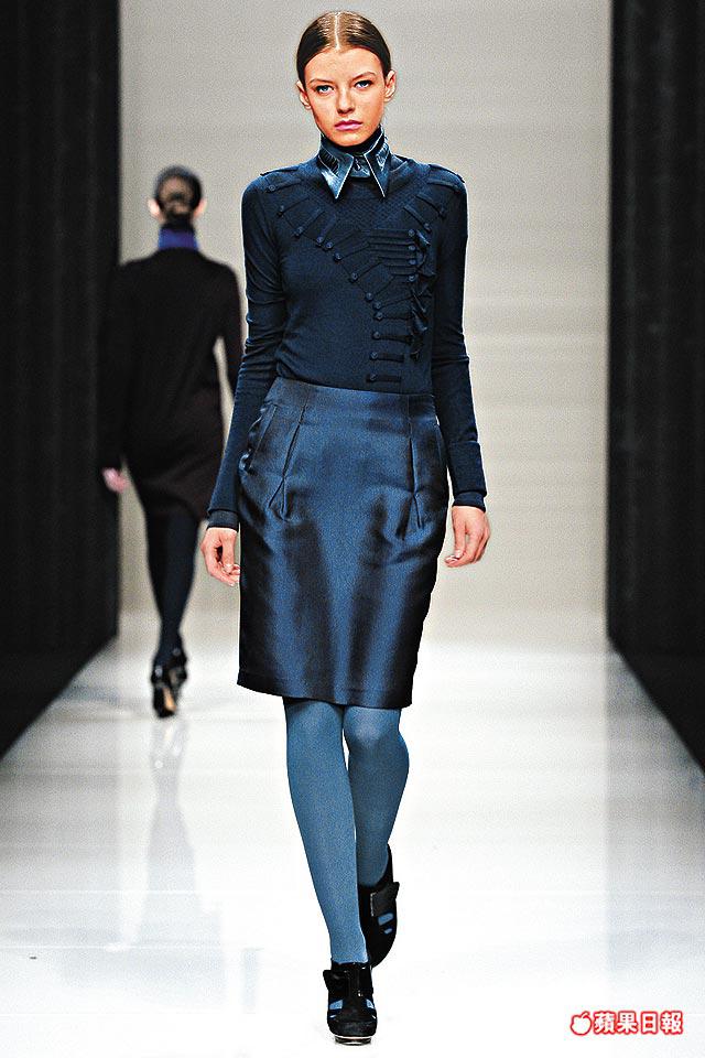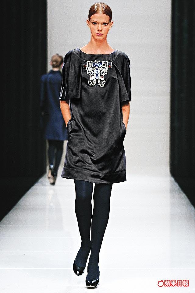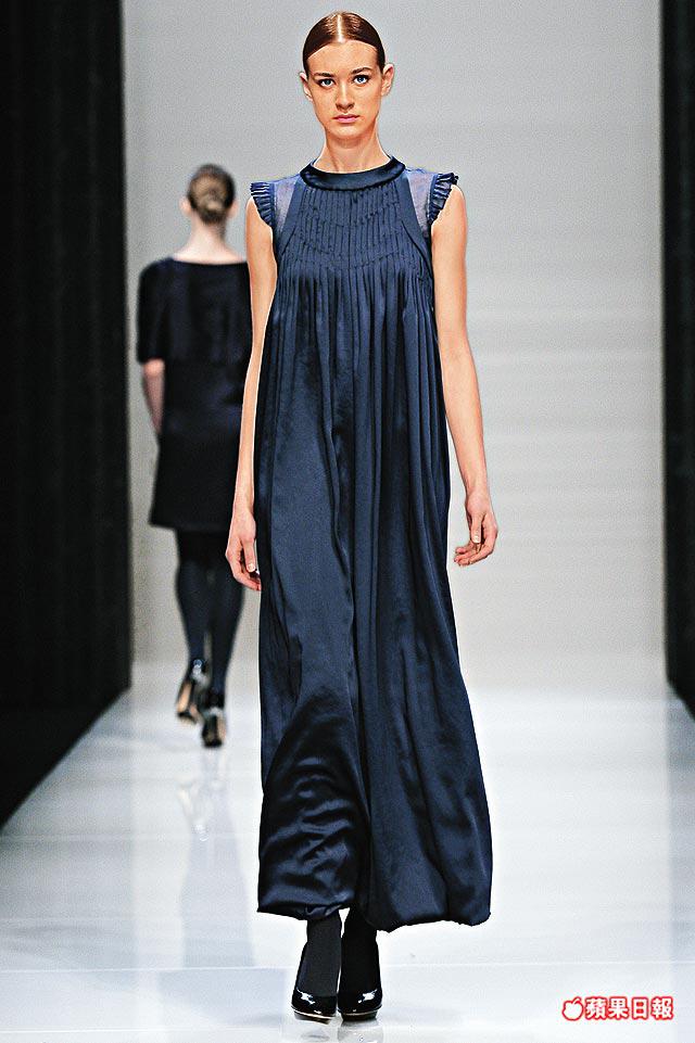 登場項目配搭有peacoat、guardcoat、cocoonshapedcoat、crochetknitdress、trapeze-shapedcardigan、slim-linesmokingpants、crisppencilskirt,追求絲毫華麗的則有ribbontrimmeddress、taffetadress及用上metal或glassembroidered的晚裝。整體來說,穩陣沒失誤,日夜交替之間均見harmony。
