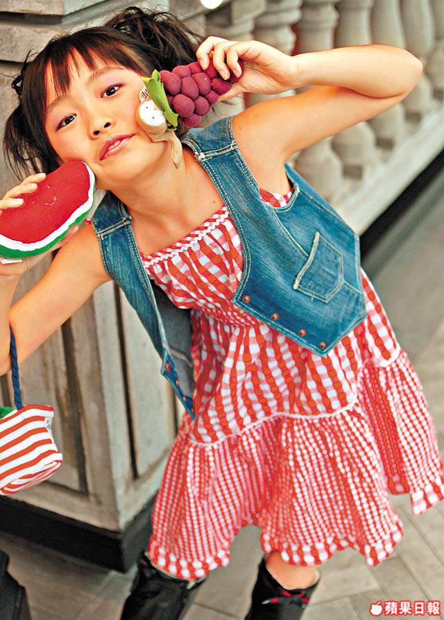 On凱霖(中)H&M有機粉紅Tee$129/b、H&M有機牛仔背心$149/b、H&M有機深藍短褲$149/b