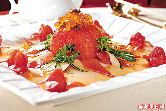 選用東北溫室大番茄,將番茄放進加入一級話梅的女兒紅中浸泡,鮮甜的番茄索滿女兒紅的甘、話梅的酸,層次豐富。