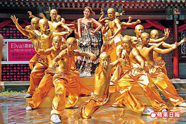 蕭亞軒昨日出席在北京什剎海會館舉行,加盟EMIVirgin的盛大記者會,近百中港台傳媒到場採訪,以D&G露肩低胸裙亮相的蕭亞軒神采飛揚,唱片公司為凸顯其天后地位,除找來18位塗滿金銅顏料的赤裸肌肉猛男伴她出場外,公司高層鄭東漢更送上玉如意,黃柏高就誓要捧她成為影后,fans則送上鳳冠給偶像,還有同門歌手蔡依林、羅志祥、陶喆、王力宏、黃立行預先錄影的支持片段。