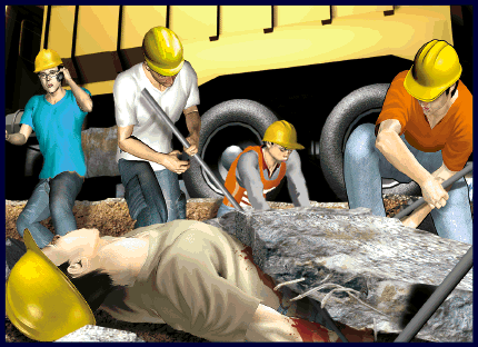當時,鄧兆棠正與一名女工經過泥頭車旁邊,石屎板凌空墮下剛打中鄧左邊身體,女工則逃過大難,鄧當場倒地並遭石屎板壓着下半身,身受重傷。現場7、8名工友見狀馬上衝前營救,幾名工友用木方撬起石屎板,其他人則合力將經已奄奄一息的鄧兆棠拉出靠在牆邊。