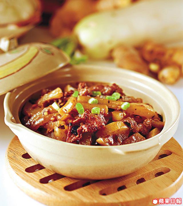 4.於同鑊下焗熟的白蘿蔔絲兜勻,加入少許白蘿蔔汁,煮沸後下牛肉回鑊,下蠔油及生粉水埋芡即可。