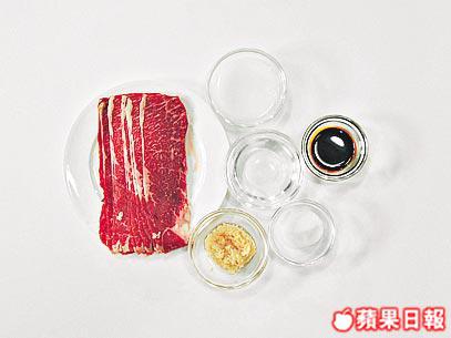 醃料:生抽2茶匙、糖1茶匙、生粉2茶匙、水/油各少許