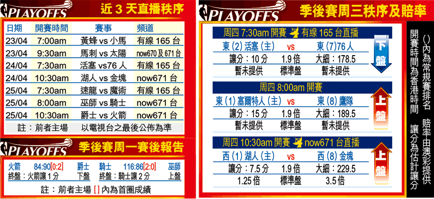 落後0:2的火箭,接着要到訪今季常規賽「主場王」爵士(37勝4負),雖然受腿筋傷所困的艾士頓或可趕及復出,不過回顧歷史,能夠在此劣勢下扭轉敗局的成功例子實在寥寥無幾;從未突破季後賽首圈的T-Mac,看來將再次飲恨!