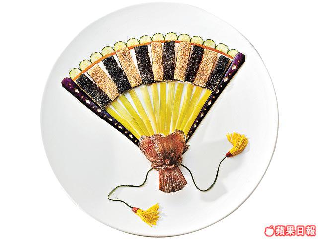 菜餚陳設極花心思,碟上的食雕由有「揚州李一刀」之稱的李順才師傅操刀,「有鳳來儀的蘿蔔鳳凰約花兩小時,只能保留兩日,而賈寶玉和林黛玉則為麵塑,最難做是臉部輪廓。」