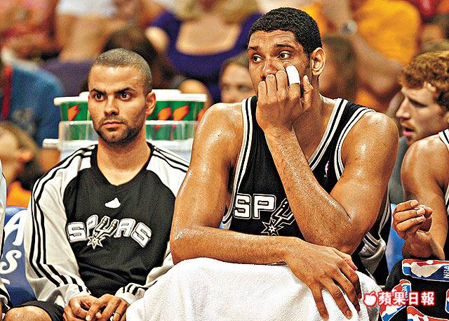 首3節後落後28分的馬刺見大勢已去,將鄧肯(右)及柏加收起,留作下仗回師主場向太陽進行反擊。GettyImages