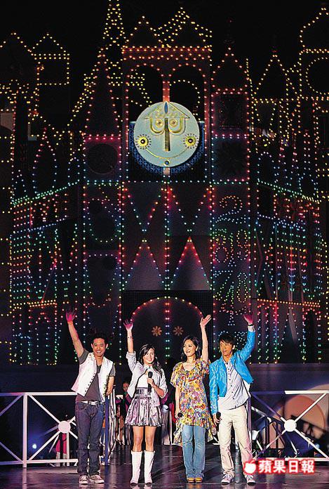 香港廸士尼樂園前晚為「小小世界」舉行開幕,楊千嬅代表香港、光良代表馬來西亞,聯同來自菲律賓的NikkiGil及泰國歌手Two一同擔任揭幕嘉賓,四人帶領過百位來自中港台、澳洲、新加坡及菲律賓等地的小朋友以不同語言獻唱。早前廸士尼找來Twins宣傳樂園,淫照事件後已把Twins的廣告抽起,前晚也不見二人蹤影。