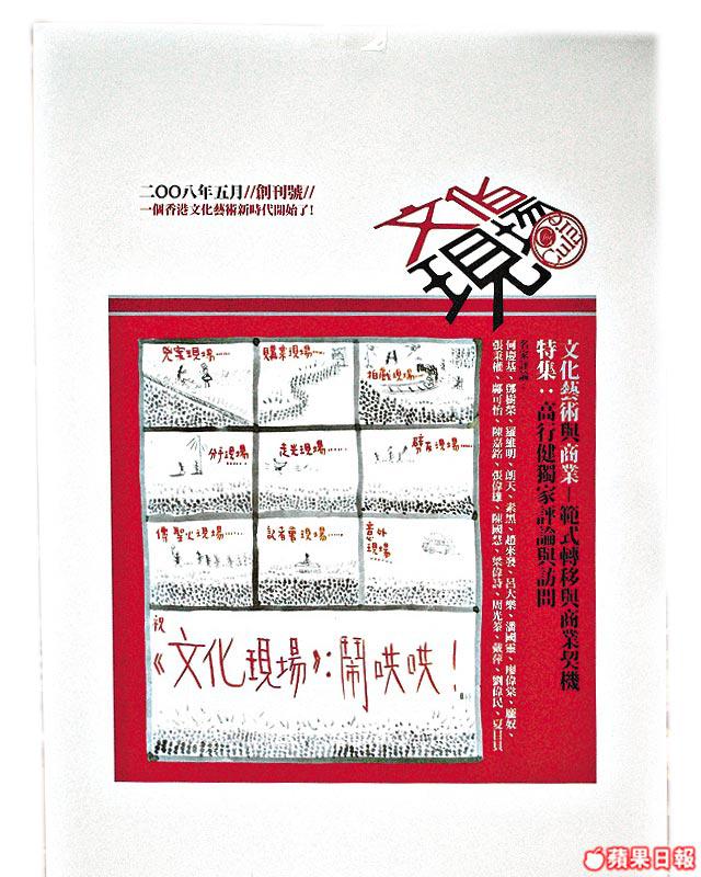 《TimeOut》靠藝評,但我們的文化人卻冇晒地盤N年,毋須評價的「藝術」橫行多年,「藝評渴求症」幾乎成瘟疫,連西九統帥曾特首都知衰,終於等到藝發局批出「文化評論」雜誌《文化現場》兩年經費,5月1日出台,數十文化評論大家列陣在前:李照興、廖偉棠、潘國靈、張輝、羅維明,還有高行健……但當我深入腹地,偷窺創刊封面,乜咁似《明報月刊》!?老實人做老實事,總編輯趙來發最後跟我說:「當大家心中有個很後現代的期望,我就來給大家一個反高潮。其實我們的確沒有文化評論雜誌,而何謂文化評論亦大有爭論,不如就看看第一期這試金石吧!」《文化現場》執行總監區惠蓮得此資助其實是06年時藝發局找報章搞文化版不果,她毛遂自薦,計劃書竟然得咗,10年前的《打開》翻身有望……不過佢哋話最大期望唔係創造奇迹,而係可持續發展,最緊要將七零八落的實力重組。