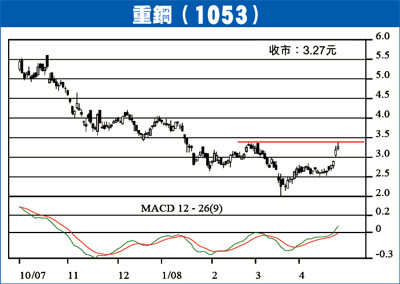 重鋼現價可考慮買入,以2.8元作止蝕位,股價上破3.4及3.75元均可加注。