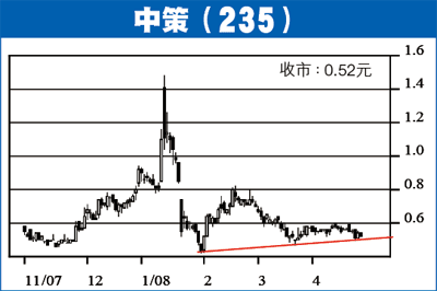 剛宣佈搞礦嘅中策集團(235)去年蝕咗4037萬元,雖然對比上年同期蝕少咗千幾萬,但係數一數呢間公司過去五年紀錄都係見紅,可說係全無起色。中國星集團(326)去年度轉盈為虧,蝕1.03億元,其06年度之3600多萬元盈利,可說是罕見,因其02至05年度業績都係蝕到飛起。
