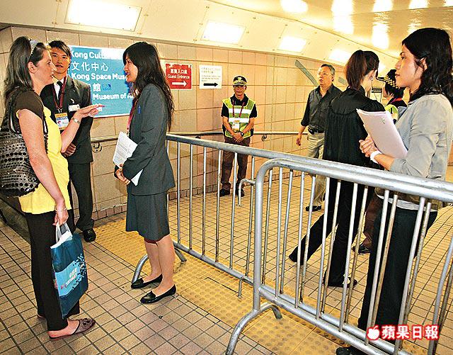 文化中心昨午12至6時封鎖,東起星光大道金像獎銅像,西至鐘樓,市民一律「有出冇入」,旅客需四周圍問路。前往婚姻註冊處行禮觀禮都要繞道而行,及事先登記。昨日有21對新人在文化中心婚姻註冊,一對家長抵步後才知無法進入,兩人一臉憤怒:「未有耐聖火先到,咁早就封路,簡直係擾民。」