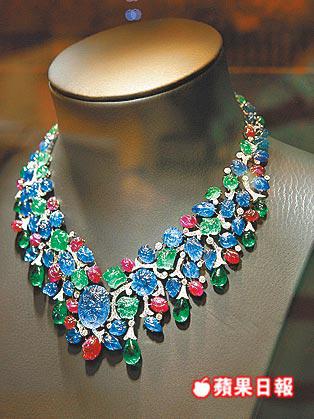 另外,Cartier首創的「水果錦囊」(TuttiFrutti)風格,也成為IndeMysterieuse中的重要經典,全場最貴的一條價值2,592萬的藍寶、綠寶、紅寶巨型頸鏈,正是用上TuttiFrutti風格。至於高級珠寶系列,珍品中有一枚由單顆重15.9卡祖母綠寶鑲成的鑽戒,價值達2,149萬。