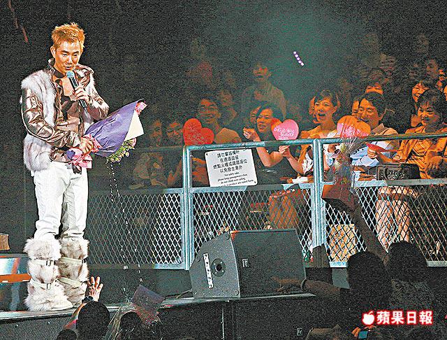 小齊前晚開騷時玩「小齊說」遊戲,叫全場觀眾拿出大會送贈的桃紅色心形卡紙,聽他指示向左或向右擺動,場面壯觀。小齊唱至《有夢的人》時忍不住當眾灑下男兒淚(圖),他哽咽說:「Sorry,有啲哭泣,多謝大家支持,我已經五次喺紅館開騷,多謝你哋畀機會我,喺紅館唱歌係我嘅夢想,男兒有淚不輕彈,唔好喊啦!」