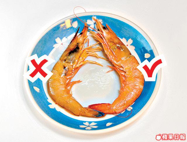 答:最好揀一些蝦頭、頸同腳唔好現黑點。如果有黑點或眼睛開始發白,即表示不新鮮,最好唔好買。